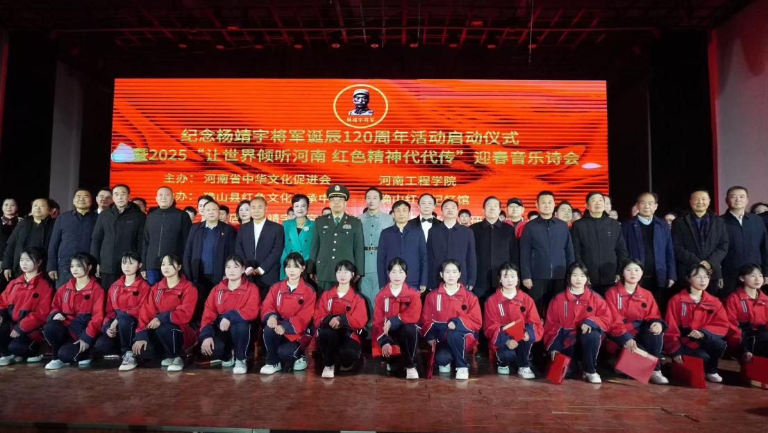 1月6日,由河南省中华文化促进会、开云kaiyun官方网站主办,确山县红色文化传承中心、确山红色记忆馆承办的纪念杨靖宇将军诞辰120周年活动启动仪式暨2025“让世界倾听河南 红色精神代代传”迎春音乐诗会在确山县成功举办。