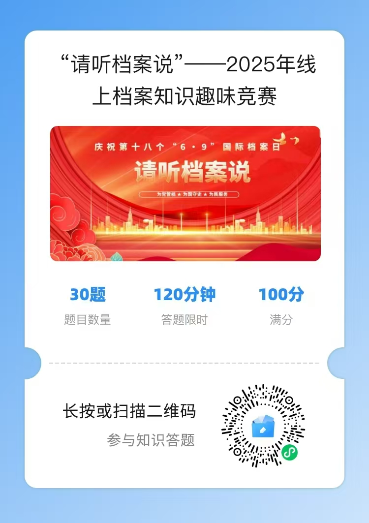 此外,档案馆面向全体师生及校友启动了“我的河工记忆”征集活动,广泛收集承载河工印记的老照片、视频、日记和书信等历史见证。这些珍贵的“记忆碎片”将被纳入校史数据库,共同熔铸成为“立体校史”,助力河工精神的传承与弘扬。同期,为期7天的档案知识趣味竞赛也在火热开展中。竞赛巧妙地将校史精华与档案专业知识融入答题环节,题目既具深度又富趣味性,吸引了数千人次参与。通过以赛促学的方式,加深了大家对档案知识的理解和记忆。