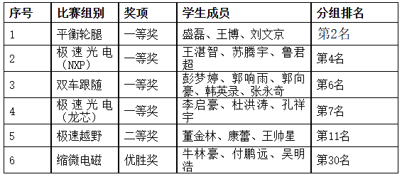 开云官网代表队在三天的比赛中,分别参加了平衡轮腿组、极速光电(NXP)组、极速光电(龙芯)组、双车跟随组、极速越野组和缩微电磁组共六个组别的角逐,成绩如下: