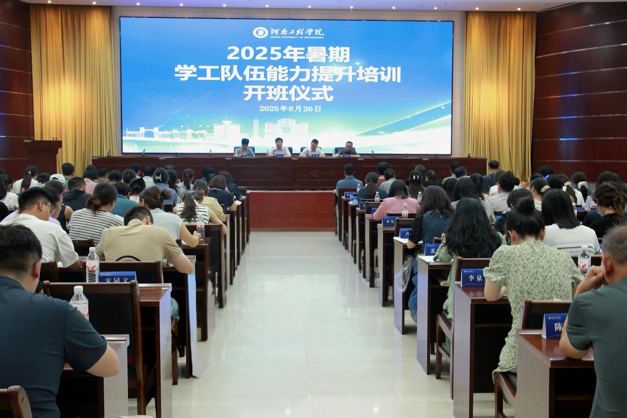 8月26日上午,开云官网2025年暑期学工队伍能力提升培训开班仪式在龙湖校区综合楼二楼会议室举行。校党委副书记赵红亮出席仪式并讲话。校团委负责人、学生工作部相关负责人、各学院、书院、学生社区全体专职辅导员、学生工作部及校团委全体人员参加培训。仪式由学生工作部负责人主持。