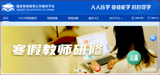第一步:进入国家智慧教育公共服务平台(www.smartedu.cn),点击“寒假教师研修”专题。