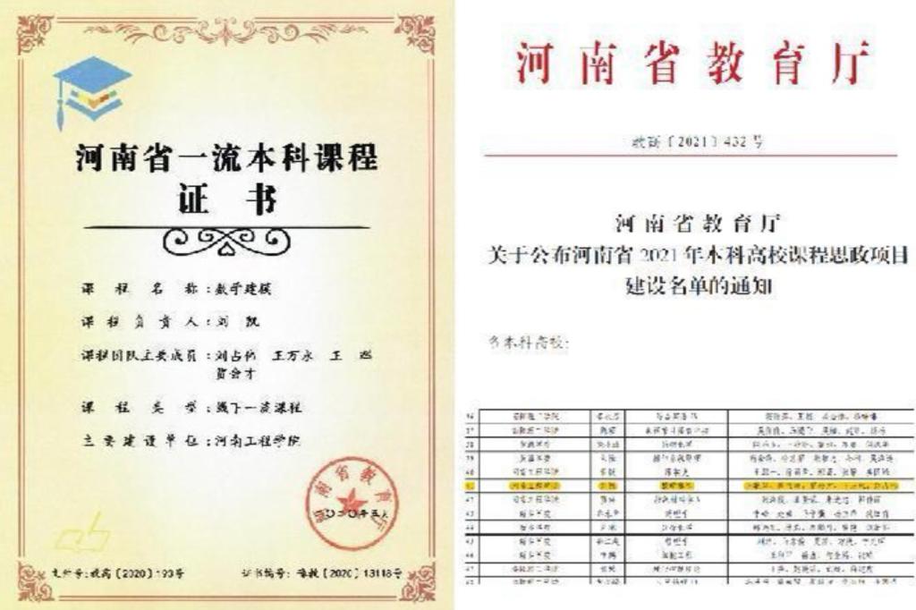 开云kaiyun官方网站数模指导组党员教师广泛围绕数学建模工作开展教学研究和教学改革,共立项河南省教学研究项目4项,其中重点项目1项。获批河南省一流课程、课程思政样板课、研究性教学课程6项,其中,数模指导组教师主讲的《数学建模》课程分别于2020年、2021年获批河南省一流课程、河南省课程思政样板课程。