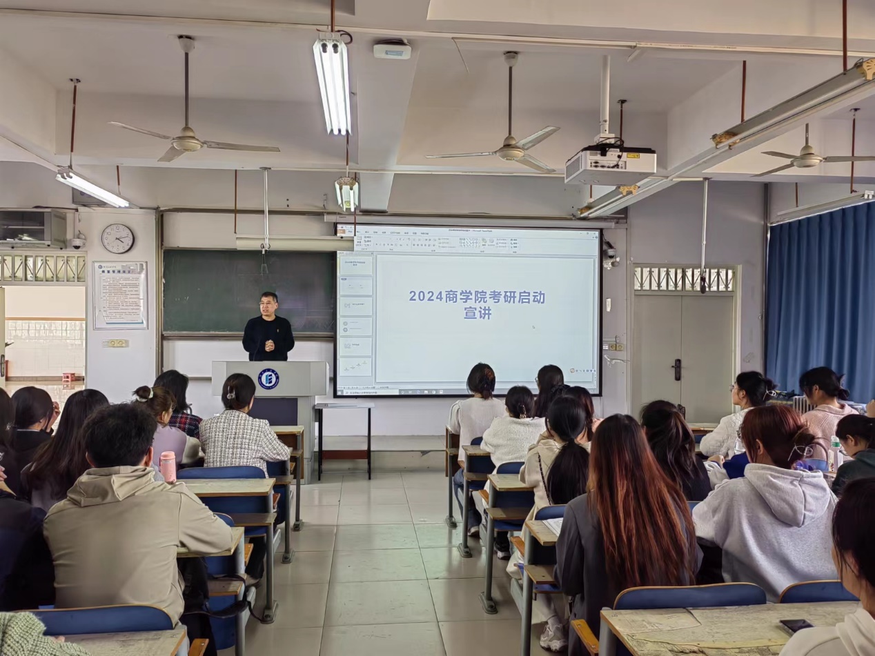 为持续做好我院新一届考研工作,充分调动同学们的考研积极性, 3月3日下午,商学院在7A401召开2024届考研启动会。2024届考研学生200多人参加会议。会议由副院长田超杰主持。