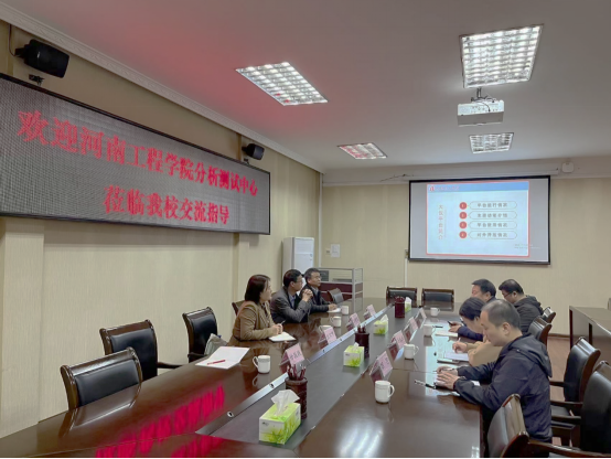 在南阳师范学院,国有资产与设备管理处处长王帅伟介绍了国有资产与设备管理处的机构设置、大型仪器设备开放共享的相关政策。副处长马磊介绍了大型仪器设备开放平台在建设过程中的遇到的问题。双方人员就设备管理工作中的问题及解决办法进行了讨论交流。会后,分析测试中心主任吕林霞携张秋慧一行到南阳师范学院分析测试中心进行观摩学习。