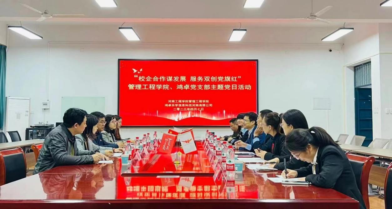 为深入学习贯彻党的二十大精神,助力开云官网高水平应用型本科高校建设,发挥党建在校企合作中的引领作用,拓展校企合作新思路、新模式,4月7日,管理工程学院教工党支部与洛阳鸿卓电子信息技术有限公司党支部联合开展“校企合作谋发展 服务双创党旗红”主题党日活动。