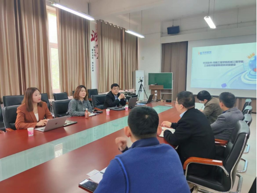 4月11日上午,华天软件有限公司资深技术顾问、产品总监李伟,北京分公司总经理刘廪,华中区渠道教育经理周红琴一行到访机械工程学院。院长张红松、智能制造系主任李大庆、材料工程系主任赵永涛、实验室主任马涛、河南省智能产线仿真与检测工程中心秘书刘军以及工业软件研究领域的教师参加了此次交流座谈。