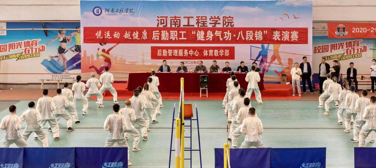 为贯彻习近平总书记牢固树立健康第一教育理念的重要指示,落实《中央关于全面加强和改进新时代学校体育工作的意见》,发挥学校体育竞赛引领教职工参与体育锻炼促进身心健康。4月13日下午,后勤管理服务中心在西校区体育馆举行“健身气功·八段锦”表演赛,后勤管理服务中心、体育教学部相关负责人及200多名参赛队员参加了开幕式。本次表演赛裁判长由体育教学部党总支书记周凯担任。