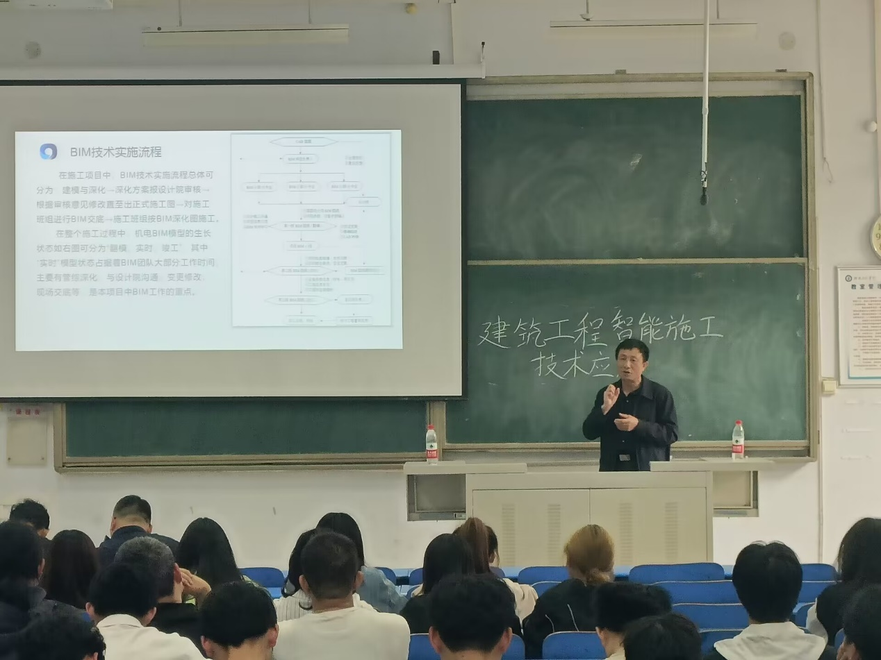 2023年4月12日下午,河南泉舜工程有限公司总工程师、正高级工程师李永胜在西校区3J101开展了建筑工程智能施工技术应用的讲座,系统的向同学们讲解了智能化工程设计、施工、作业一体化流程。