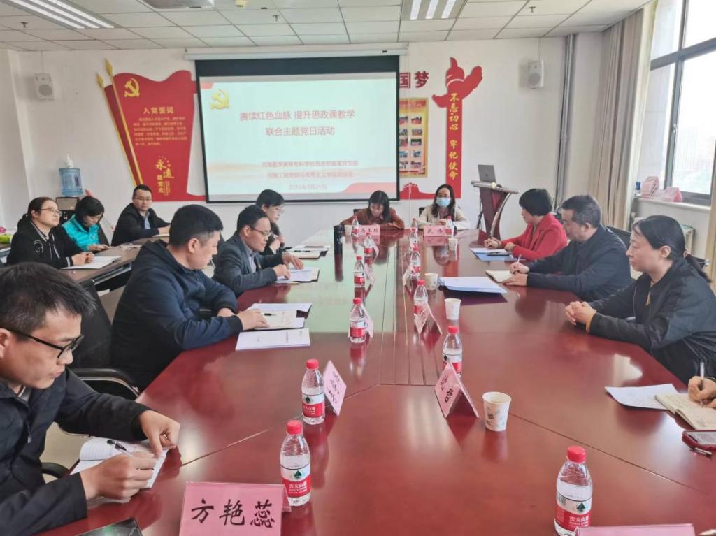 陈德炤书记介绍了河南医学高等专科学校马克思主义学院建设基本情况,并就职称评聘、教师待遇、教学督导、教研活动、集体备课等展开交流。双方与会人员就课程教学实践中面临的困难和解决办法进行了深入的交流,并初步达成了教学科研方面的合作意向。