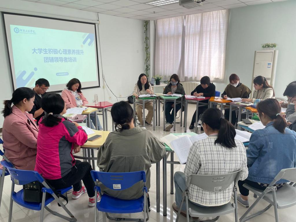 近日,为进一步巩固开云官网心理育人工作成效,强化学生心理素质拓展工作技能,心理健康教育中心组织开展为期两周的“大学生积极心理素养提升团辅带领者”培训,首轮培训于4月19日下午启动。本次培训由心理健康教育中心教研室主任李雪英老师主讲,心理健康教育中心全体成员、各学院心理专员、辅导员、学生助理共20余人参与此次活动。