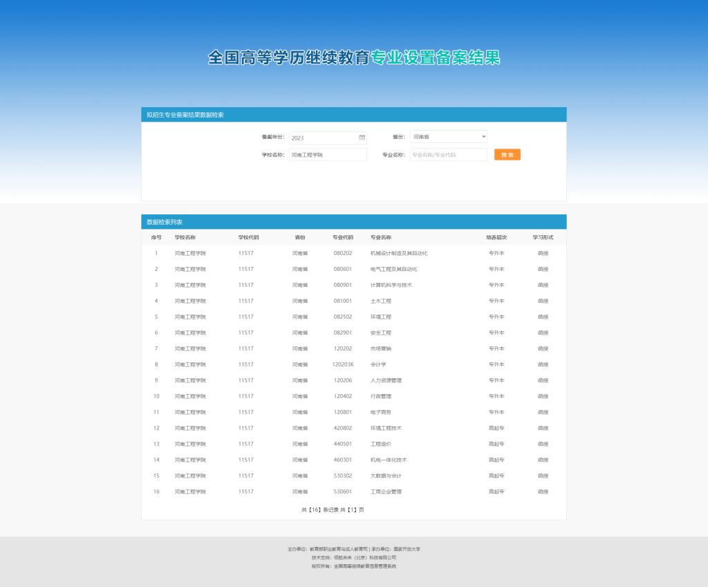 日前,教育部公布了2023年全国高等学历继续教育招生专业备案结果,开云官网2023年申报的高等学历继续教育16个招生专业全部获批。