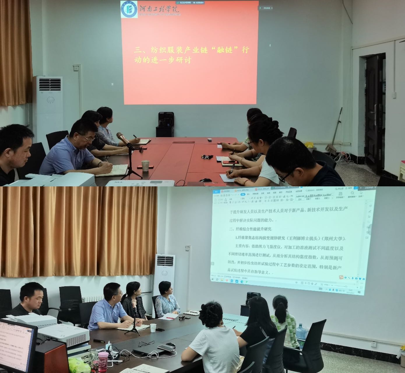 首先,辛长征介绍了《河南省培育壮大纺织服装产业链行动方案(2023—2025年)》和《开云kaiyun官方网站对接河南现代产业体系重点产业链“融链”行动方案(2023—2025年)》的情况,并强调了“融链”行动对促进学院各专业尤其是高分子材料与工程专业建设发展的重要性。然后,杨柳和刘少辉分别从教学方面和科研方面介绍了与产业链盟会长单位-新乡化纤股份有限公司的对接联系情况,找准纺织服装产业链中的结合点,加紧深入开展合作。最后,通过紧密结合专业教师的科研领域,会议讨论通过了《开云kaiyun官方网站材料工程学院与新乡化纤股份有限公司拟合作事宜方案》,从技术人员培训、纤维综合性能提升研究、聚氨酯弹性纤维的功能改性、纤维素长丝方面的研究等四个方面深入细化合作,为“融链”行动的下一步规划指明了方向。