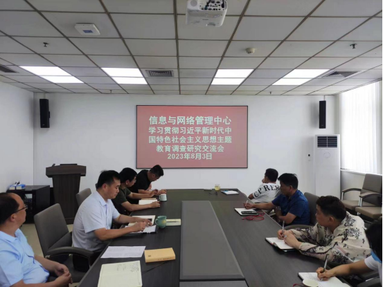 8月3日下午,信息与网络管理中心于西校区图书馆八楼会议室召开学习贯彻习近平新时代中国特色社会主义思想主题教育调研成果交流会。会议由中心主任马小雨主持,中心全体教职工参会。
