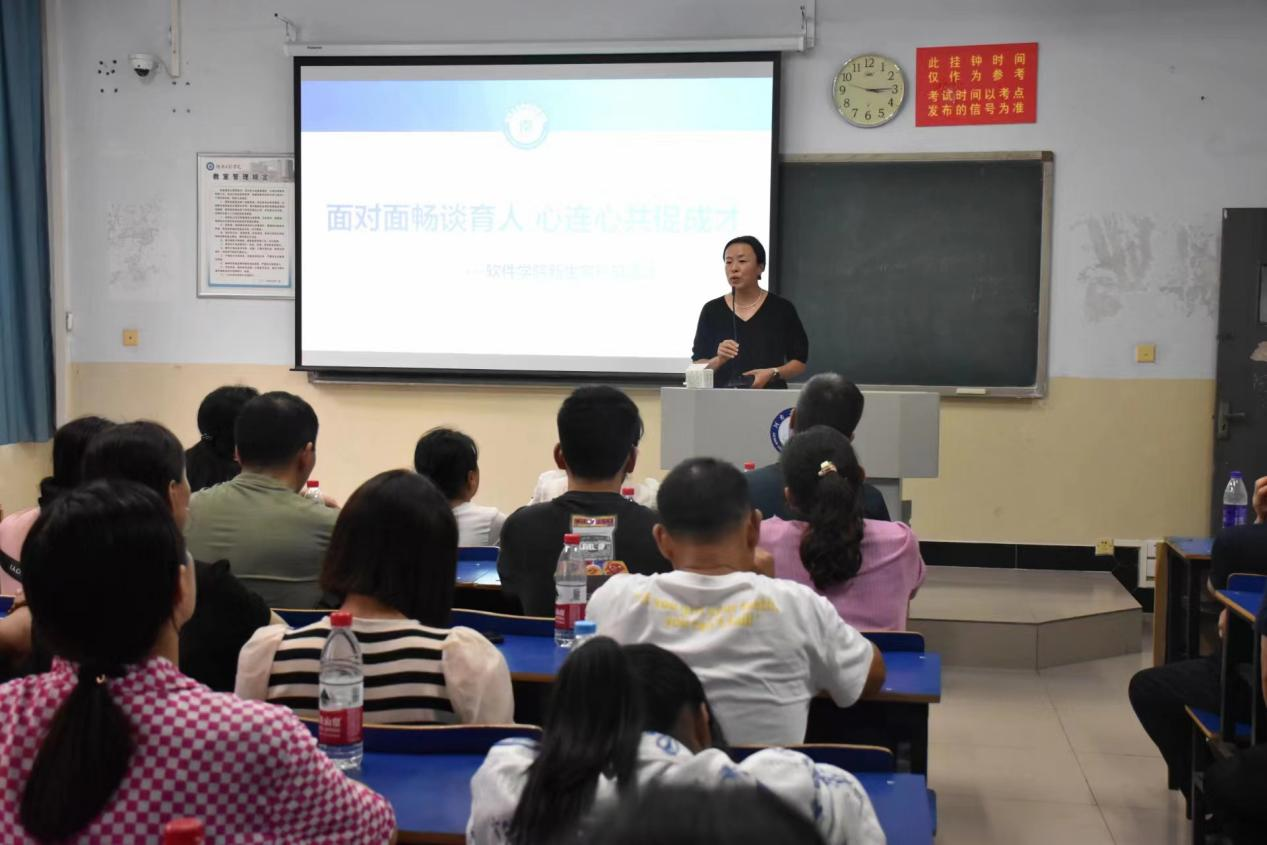金秋筑梦,家校携手向未来。为进一步加强家校沟通,凝聚家校育人合力,共育英才,9月9日下午,软件学院在教室5101召开了2023级新生家长见面会。学院党委书记张黎烁、副院长张劳模、党委副书记张婉、学工办主任赵青、新生辅导员张露及部分新生家长参加会议。会议由张婉主持。