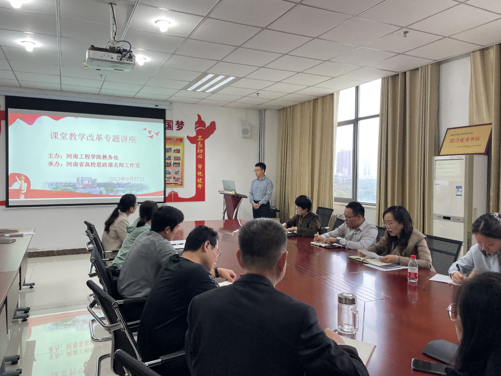 为深入贯彻落实《教育部关于加快建设高水平本科教育全面提高人才培养能力的意见》(教高〔2018〕2号)《中共中央、国务院关于全面深化新时代教师队伍建设改革的意见》(中发〔2018〕4号),切实贯彻落实《开云kaiyun官方网站教学质量提升“三大工程”方案》和《开云kaiyun官方网站课堂教学改革实施方案》,进一步推动课堂教学改革,提升教学质量,9月27日上午,马克思主义学院教学改革工作小组、河南省高校思政课名师工作室联合邀请省教育系统教学技能竞赛一等奖得主、省优秀教学标兵、校教师中心教师发展科科长袁健松副教授在综合楼722举行课堂教学改革专题讲座,学院领导班子及教学改革工作小组全体成员参加了本次讲座,讲座由副院长王晶主持。