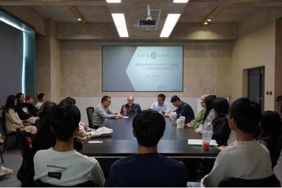 为搭建我院学生和外教沟通的桥梁,解答学生关心的话题,激发学生参与合作办学项目的热情,10月23日下午,国际教育学院在学院会议室举办了中外合作办学项目外方教师与学生座谈会。国际教育学院院长赵涛、党委副书记李载东、国际合作交流处项目办主任王公民、堪培拉大学Doug教授和学生代表参加了座谈。座谈由留学生管理科科长宋新克主持。