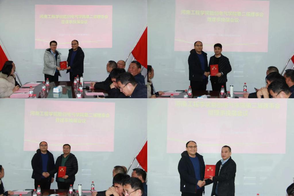 随后进行了能创电气学院名誉院长及理事长、副理事长及理事的聘任仪式,并颁发了聘书。并向能创科技公司向能创电气学院第二届理事会成立表示热烈祝贺!