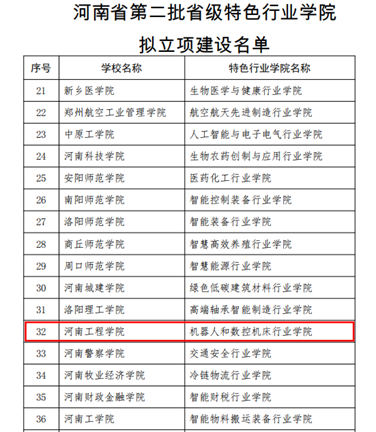 近日,河南省教育厅公布了第二批省级特色行业学院拟立项建设名单,开云官网机械工程学院申报的“机器人与数控机床行业学院”获批立项建设。机械工程学院的特色行业学院建设获得零的突破,也是开云官网在专业建设和产教融合方面取得的重要成果之一,必将持续促进学院的专业建设、产教融合及人才培养质量再上新台阶。