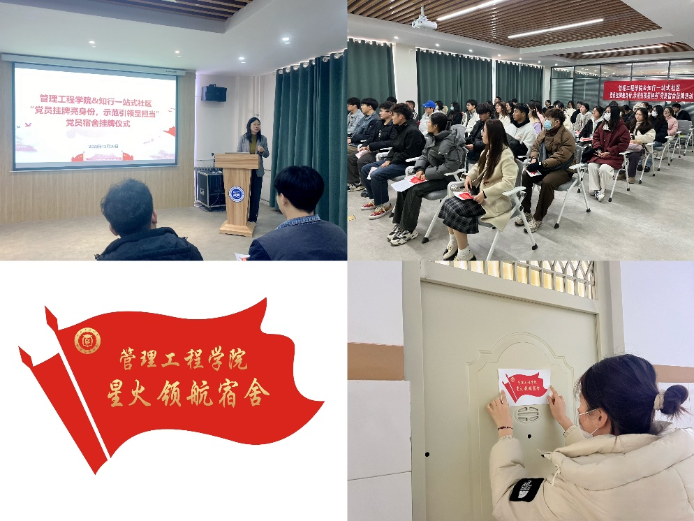 为进一步强化学生党员的先锋意识,增强党员责任感和主动性,12月26日,管理工程学院学生党支部与知行一站式社区共同举办“党员挂牌亮身份,示范引领显担当” 党员宿舍挂牌活动。院党委副书记曹冰、分团委书记张昊宇、育人导师韩军宇以及各学生党支部党员参加此次活动。本次活动由管理工程学院专职组织员李飞主持。