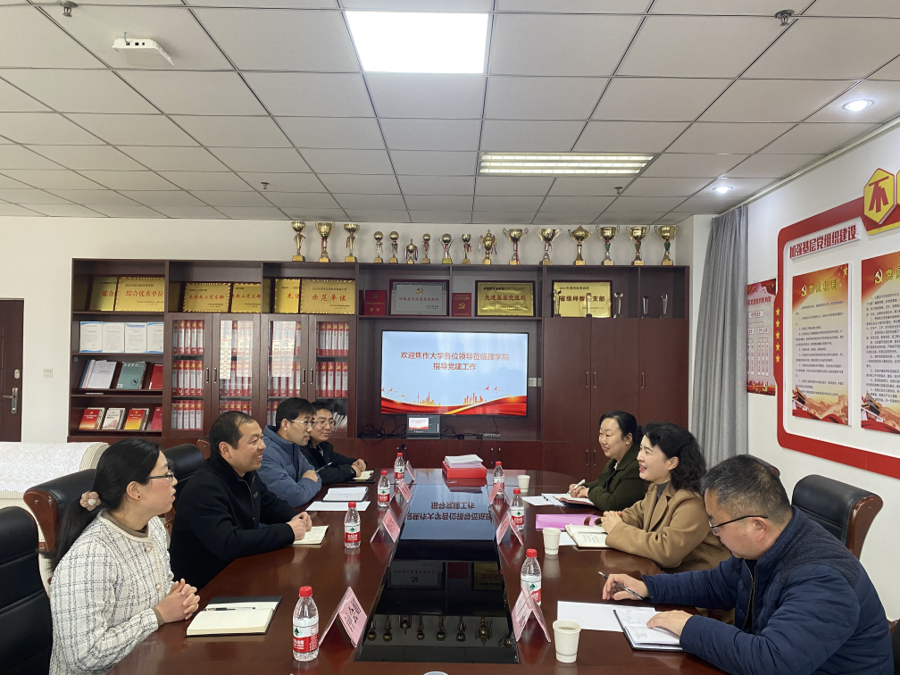 3月12日上午,焦作大学经济管理学院党总支书记杨红一行3人来理学院交流基层党建工作。座谈会在理学院党员之家举行。理学院党委书记刘付军、全体党支部书记参加了会议。