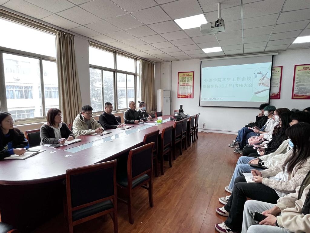 3月20日下午,外语学院在7B316召开新学期学生工作会议,学院党委书记芦伟、辅导员、班主任、各年级班长、学生代表参加会议,会议由学院党委副书记夏增强主持。