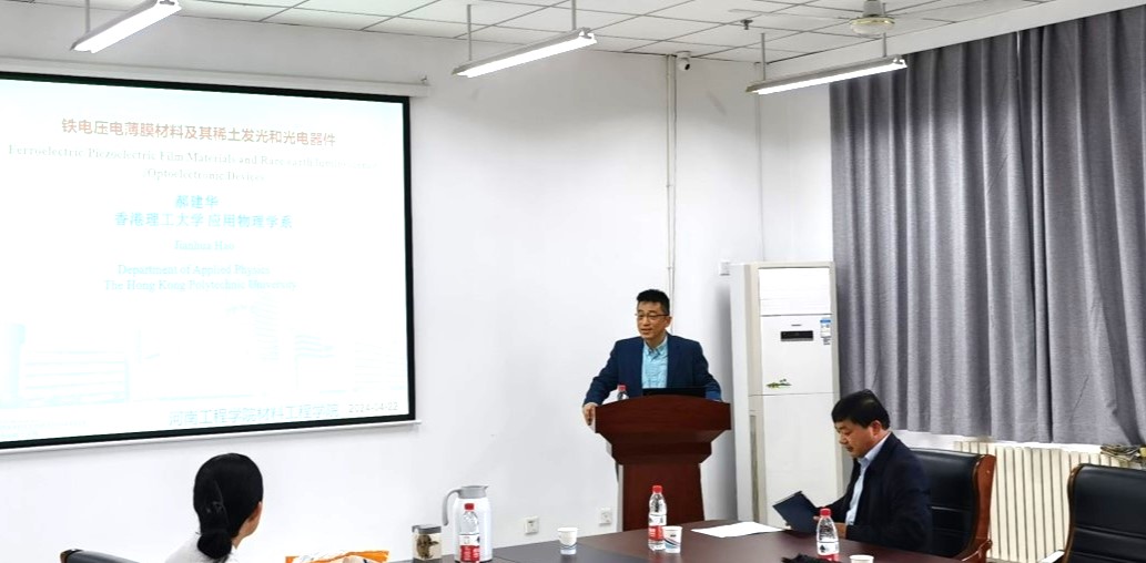 为进一步增进青年教师学术交流,提升学校材料与化工专业硕士点建设水平,指导稀土复合材料国际联合实验室验收工作,4月22日,应国际联合实验室和材料工程学院邀请,香港理工大学应用物理学系郝建华教授为开云官网师生作“铁电压电薄膜材料及其稀土发光和光电器件”为主题的学术报告。材料工程学院全体青年教师及部分本科生参加了本次报告。报告会由材料工程学院院长王振领教授主持。