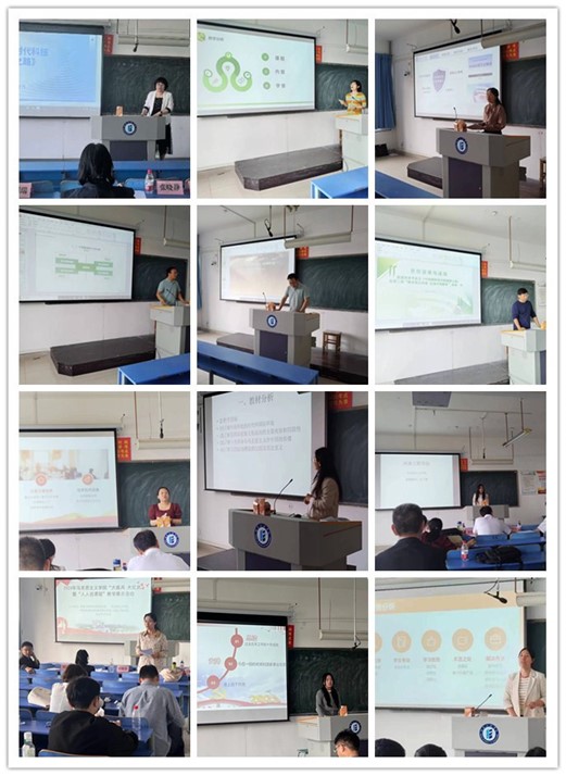 教学展示活动中,各位老师根据自己所授课程在思政课教学体系中的定位与作用,从课程设置依据、课程目标、教学重难点、教学设计、教学资源和课程应用与特色等六个方面展开说课,紧扣人才培养目标和思政课立德树人目标,并依据课程特点,结合独特的教法、学法、教学过程等环节展示了精彩说课内容。教师们从容自信的姿态、条理清晰的思路、生动活泼的语言、深入浅出的讲解,充分展现了马院教师扎实的教学基本功和良好的专业素养。