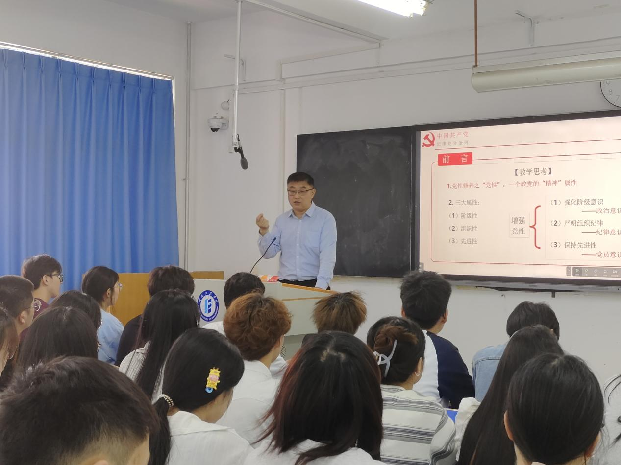为深入学习贯彻习近平总书记关于党纪学习教育的重要讲话和重要指示精神,引导广大党员同志及青年学生学纪、知纪、明纪、守纪。4月25日,商学院党支部开展“深化党纪学习,筑牢思想根基”主题党课,深入学习《中国共产党纪律处分条例》内涵,深刻认识纪律严明的重大意义,进一步推进全面从严治党向纵深发展。本次党课邀请商学院党委书记田正军主讲,专职组织员曲登科主持,商学院第31期发展对象全体参加。