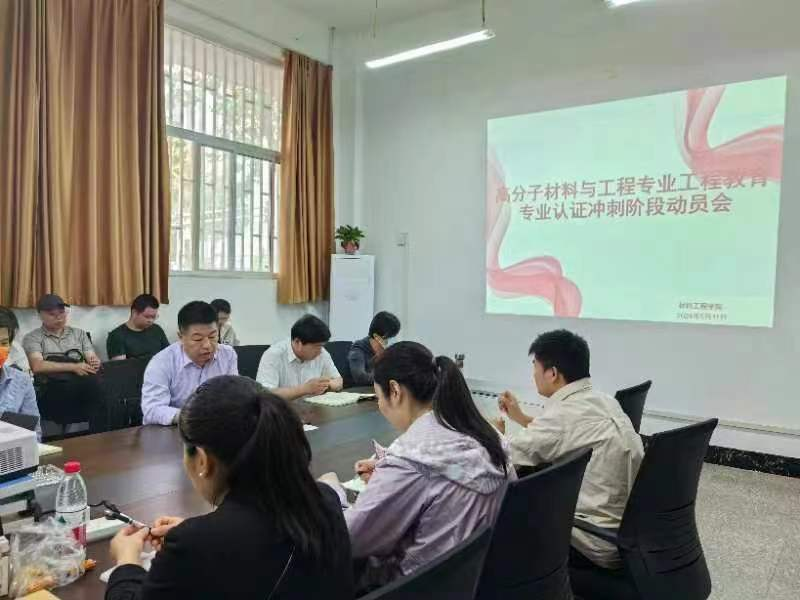5月12日,材料工程学院在工美楼108会议室召开高分子材料与工程专业工程教育认证冲刺阶段工作动员大会。学院领导班子成员和全体教师出席会议,会议由党委书记辛长征主持。
