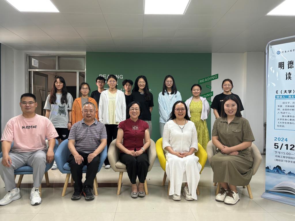 历史典籍,师生共阅。在段文平教授的带领下,全体成员共同诵读《礼记·大学》原文、《宗圣曾参》《何谓“大人”》等片段。段老师鼓励同学们修养自身道德,提升自我境界,以豁达、乐观的心态不断成长,努力到达“大人”之境界。朗朗书声中,求知若渴的学生们从传统典籍中再次看见文韵风华,看见中华民族绵延千年的文脉基因。