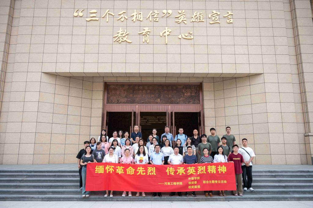 5月29日,外语学院全体教工党员及学生党员代表、校团委、校武装部党员代表走进陆军某合成旅“杨根思连”开展“缅怀革命先烈 传承英烈精神”主题党日活动,同时结合党纪学习教育,促进党纪、军纪、校纪有效衔接,从中汲取“杨根思连”“三个不相信”的精神力量,感悟“三个不相信”英雄宣言,感怀信念与信仰的力量,探索军地校联建联育。