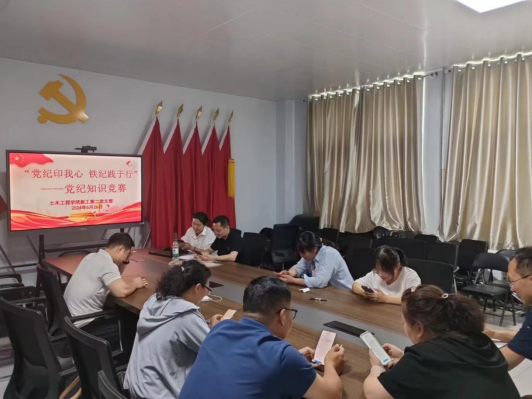 在中国共产党成立103周年来临之际,为扎实开展党纪学习教育,进一步加强党性修养,推动党纪学习教育成果转化,确保党纪学习教育融入日常、抓在经常。6月26日下午,土木工程学院教工第二党支部在学院“党员之家”开展“党纪印我心 铁纪践于行”党纪知识竞赛。
