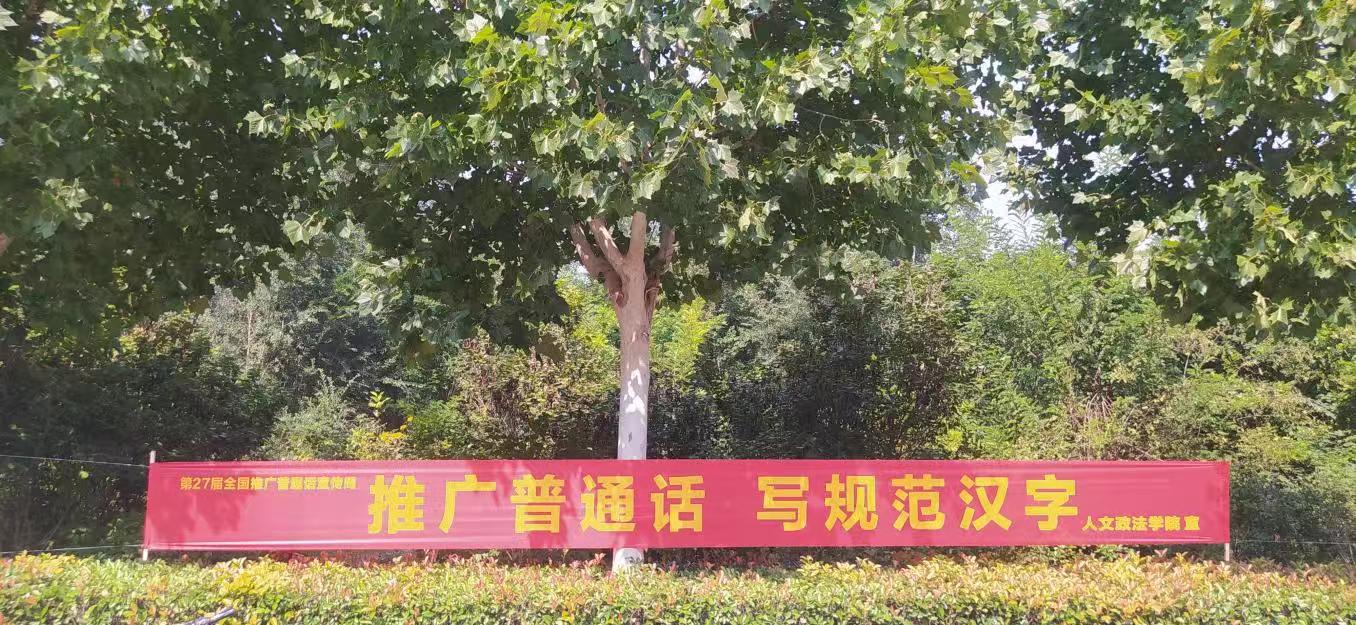 本届“推普周”以“加大推普力度 筑牢强国语言基石”为主题。活动期间,人文政法学院举办一系列活动:开展“推广普及国家通用语言文字 铸牢中华民族共同体意识”主题宣传,在校园内悬挂推广普通话横幅、张贴各种推普宣传标语、宣传画等。