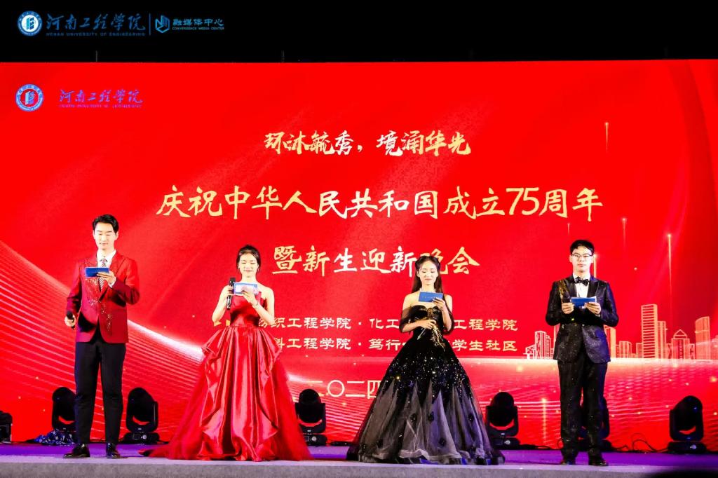 10⽉16⽇晚,“环沐毓秀,境涌华光”庆祝中华⼈⺠共和国成⽴75周年暨新生迎新晚会在桐柏校区操场隆重举⾏。老校区管委会(笃行一站式学生社区)主任、化工与印染工程学院党委书记、各学院副书记和教师代表、各学院学生负责人以及2024级的全体新生们欢聚一堂,共同欣赏这场视听盛宴。