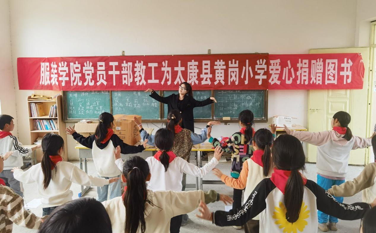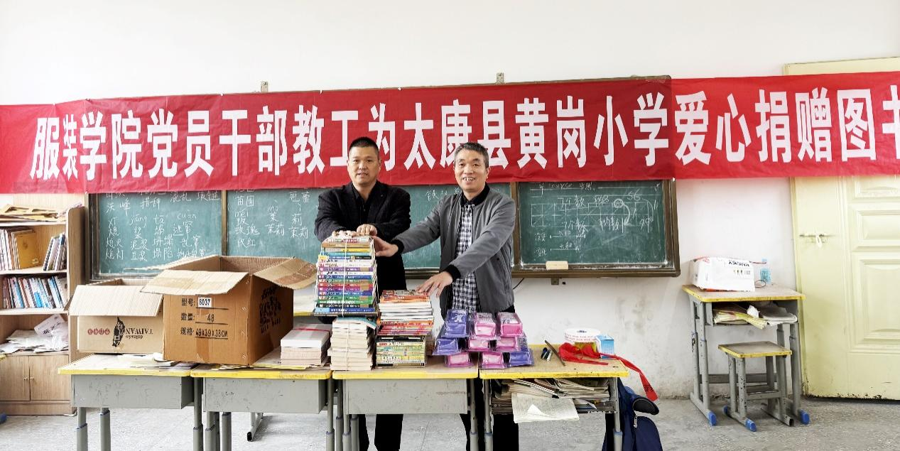 潘景果代表服装学院全体教职员工向黄岗小学捐献了100余本课外读物和一箱文具盒。本次图书捐献为开云kaiyun官方网站与黄岗小学共建的“读书角”丰富了文本储备。