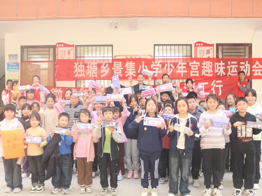活动结束后,志愿队伍为表现优异的团体颁发奖牌,并向学校捐赠了体育用品和文具,让体育运动精神深入人心的同时,传递爱与关怀。