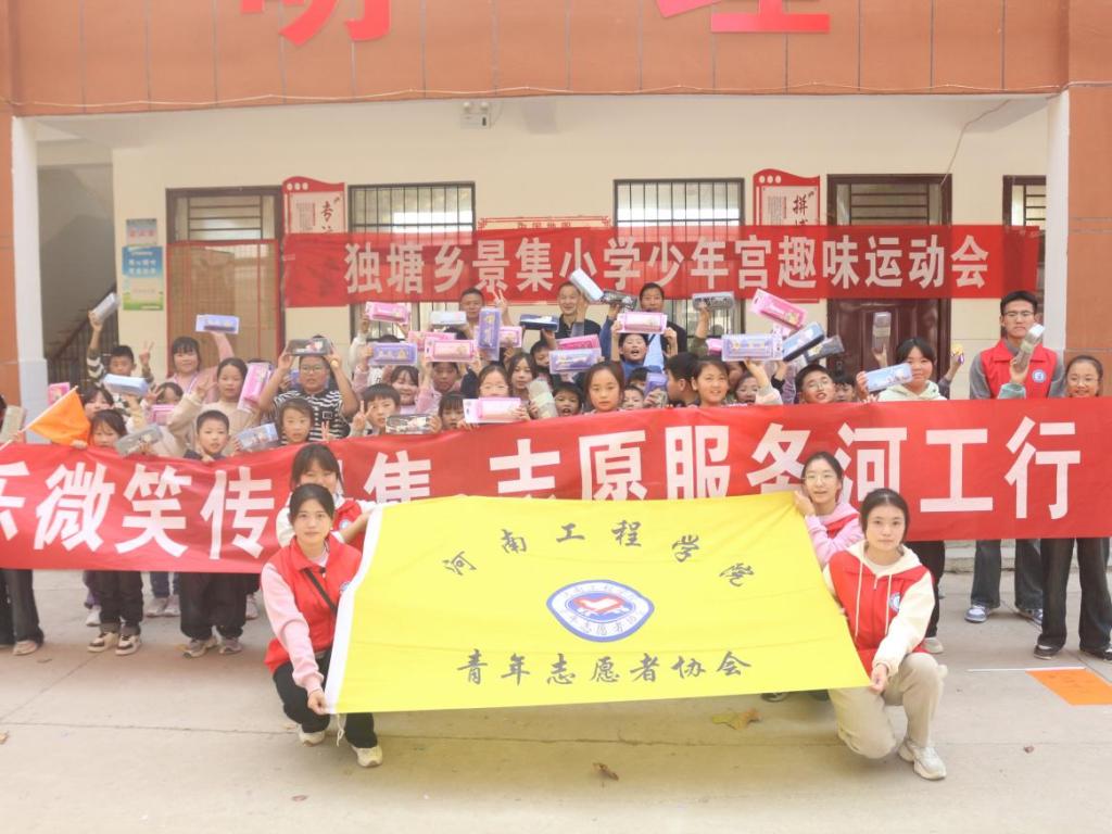 为贯彻落实省文明办《关于高校与新时代文明实践中心结对开展志愿服务工作方案》的精神,进一步丰富乡村学校学生的课余生活,提供多样化的文体活动机会,促进学生的身心健康和全面发展。10月29日,校工会、校团委老师带领两支学生志愿者队伍,分别前往太康县独塘乡景集小学和城郊乡五坝口小学,组织开展“少年宫趣味运动会”活动。