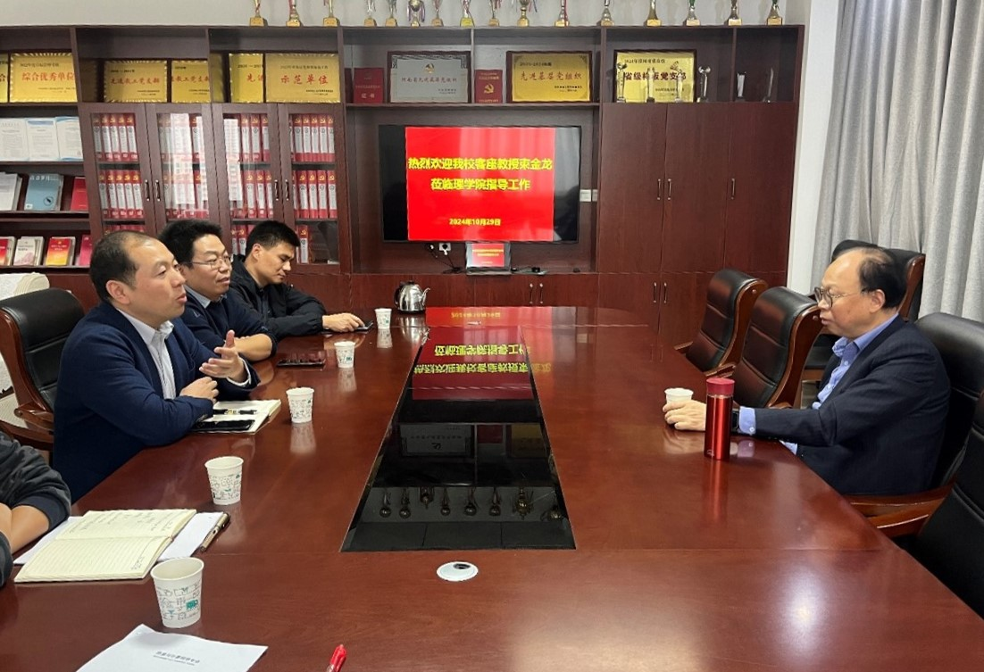 理学院党委书记刘付军发言时指出,欢迎束金龙教授来理学院调研指导工作,特别感谢束金龙教授对学校和理学院工作的关注和支持,束金龙教授的指导具有很强的针对性和实用性,为学院的发展指明了方向。学院将认真落实束教授的建议,进一步加强基础学科专业建设,进一步规范审核评估工作推进,进一步加强高水平师资队伍建设,进一步提升人才培养质量,不断提升学院的整体实力和办学水平,以理学院的高质量发展助推学校事业的高质量发展。