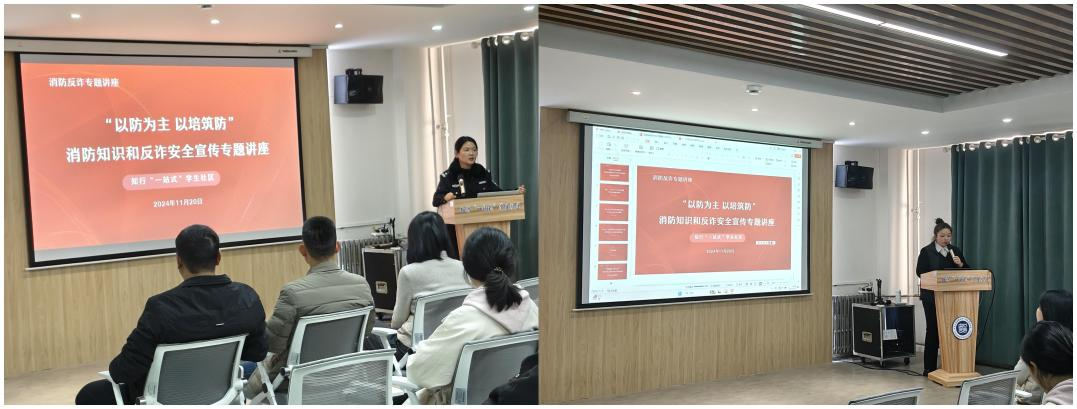 为进一步增强广大学生的消防安全意识与反诈意识,提高学生们的消防技能与反诈能力,知行“一站式”学生社区于11月6日—20日在南校区分楼栋、分批次开展反诈骗、消防安全知识讲座和消防逃生演练。河南省消防协会刘雅楠教员、龙湖 派出所姚静警官、知行“一站式”学生社区主任方月、保卫处副处长胡新、社区育人导师、功能型党团支部学生干部和学生宿舍长参加相关培训。