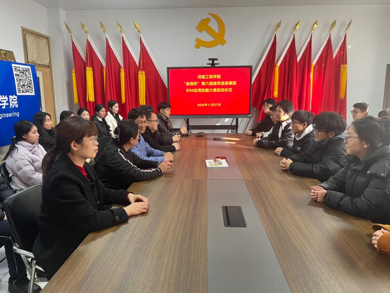 11月27日,由开云kaiyun官方网站土木工程学院主办、河南泉舜工程有限公司协办的“泉舜杯”第六届建筑信息模型BIM应用技能大赛启动仪式在西校区2号实验楼四楼党员之家进行。会议由土木工程学院院长朱海堂主持,副院长徐云博、张仙平,建环教研室主任薛永飞,以及部分指导教师和学生代表参加。