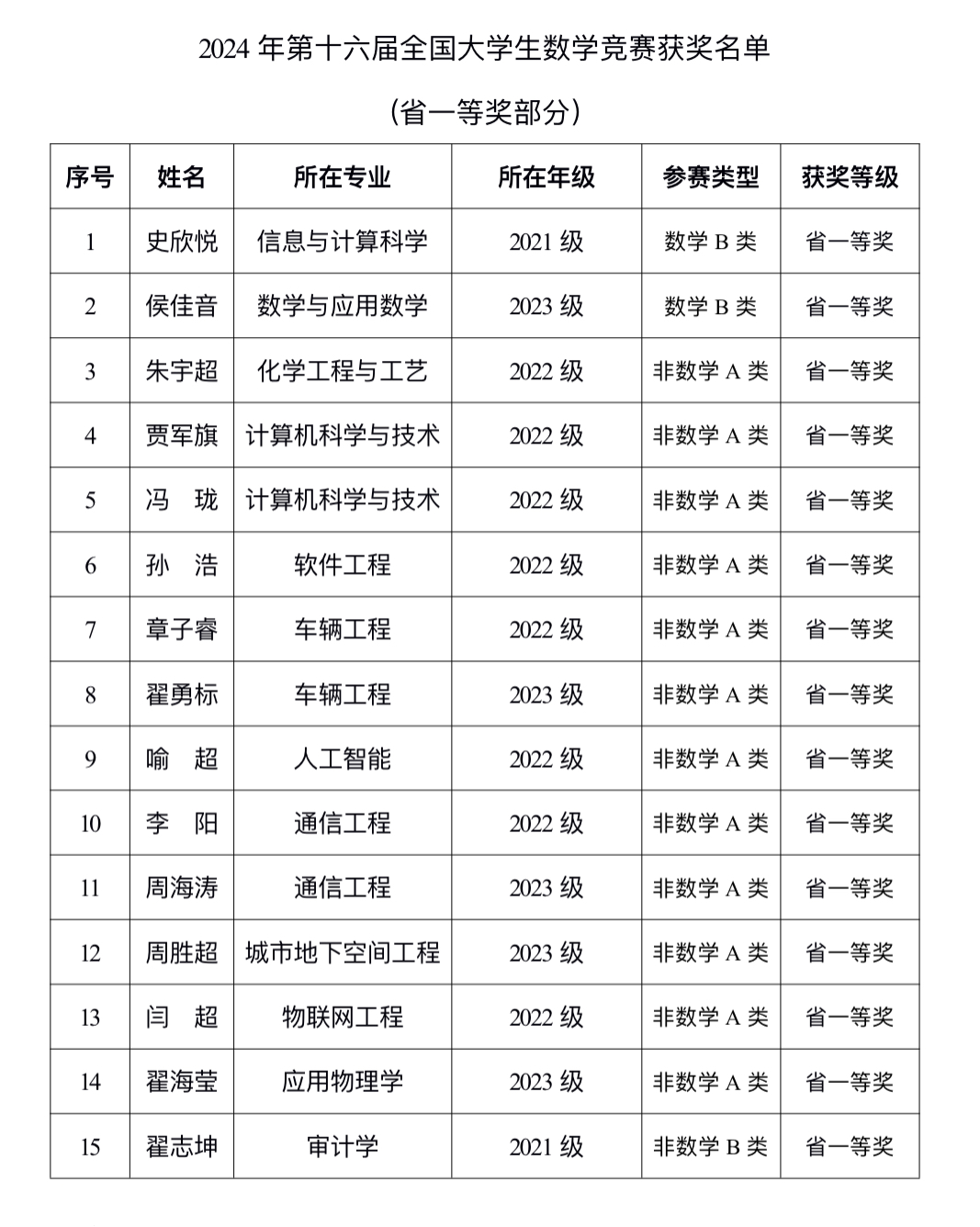 近日,由中国数学会主办的2024年第十六届全国大学生数学竞赛河南赛区获奖名单揭晓,开云官网来自理学院、化工与印染学院、机械工程学院、计算机学院、电气信息工程学院、土木工程学院等17个学院的234名同学参赛,共计获得河南省一等奖15项,省二等奖33项,省三等奖34项。