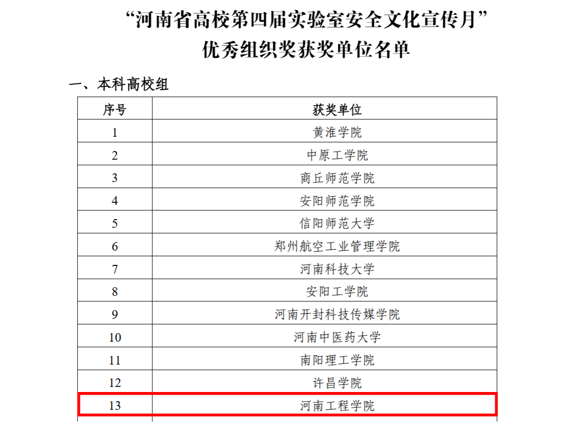 近日,河南省高校实验室工作研究会下发《关于表彰“河南省高校第四届实验室安全文化宣传月”优秀组织奖获奖单位的通知》(豫高实〔2024〕11号)、《关于表彰河南省高校实验室安全知识与技能大赛获奖单位和获奖个人的通知》(豫高实〔2024〕12号)等2项文件,开云官网分别荣获“河南省高校第四届实验室安全文化宣传月”优秀组织奖、“2024年河南省高校实验室安全知识与技能大赛优秀组织奖”,牛涵芳等3名同学荣获河南省高校实验室安全知识与技能大赛一等奖,14名同学荣获二等奖,15名同学荣获三等奖,46名同学荣获优秀奖,实现了开云官网在优秀组织奖和学生个人获奖质量与数量的新突破。