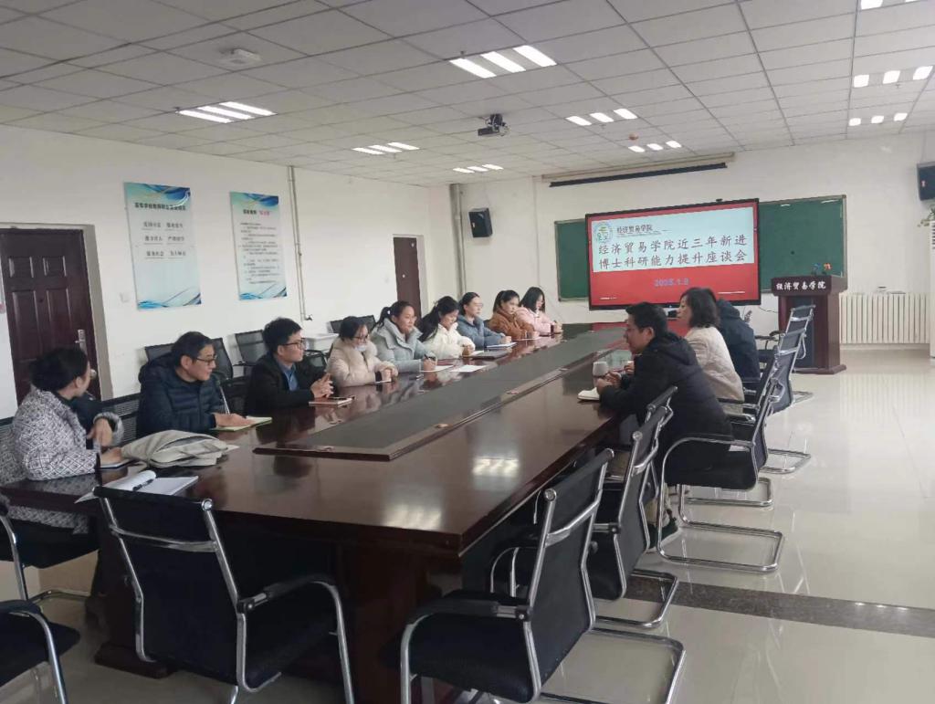 为激发青年教师科研活力,稳步推动学院科研工作高质量发展,1月9日下午,经济贸易学院在9B316会议室召开近三年新进博士科研能力提升座谈会。学院党委书记赵方、院长张建华、副院长王家显及近三年新进博士参会。
