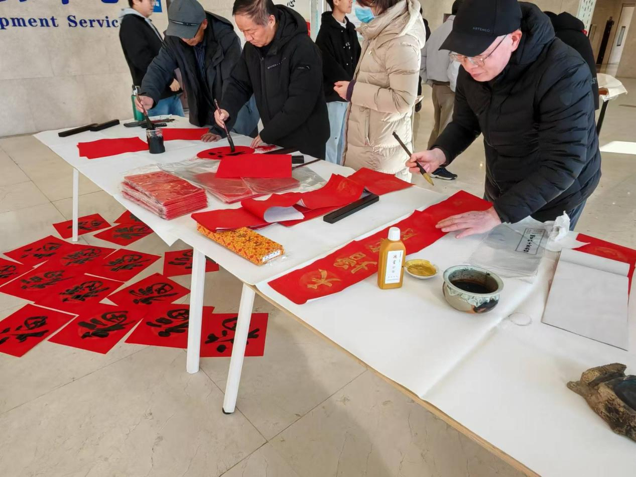 现场还进行写春联、写春贴、写福字、印制木版年画等活动,从每一个参与者的笑容里,传递出中华优秀传统文化的魅力。众多书画爱好者也被现场的浓厚氛围所感染,挽起袖子,加入写春联的队伍里,体验不一样的浓浓年味。