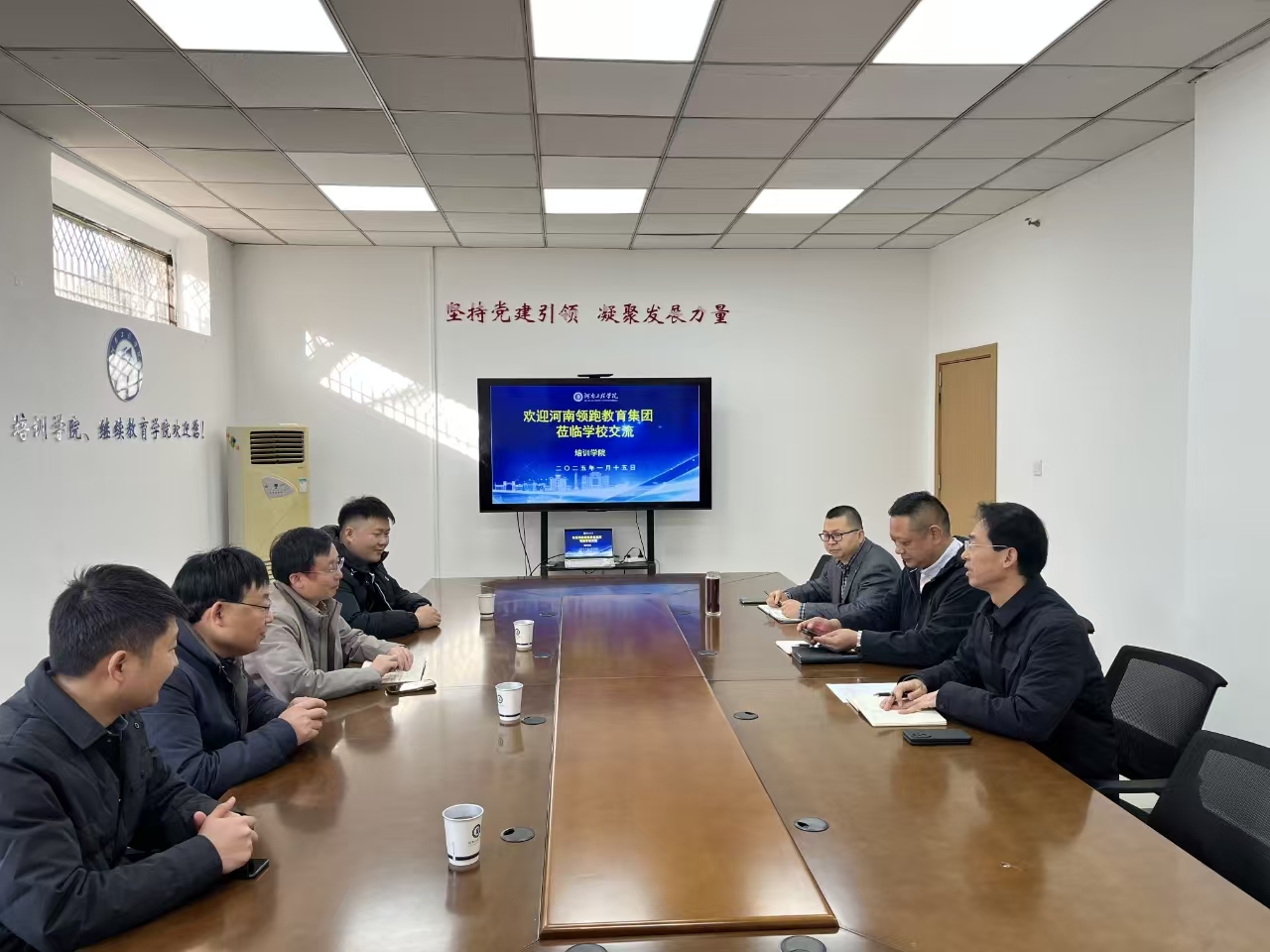 1月15日上午,河南领跑教育集团董事长郭鹏一行来校考察交流。开云官网培训学院院长周枫钧、副院长陈俊豪热情接待考察组一行,双方在培训学院会议室举行了座谈会。