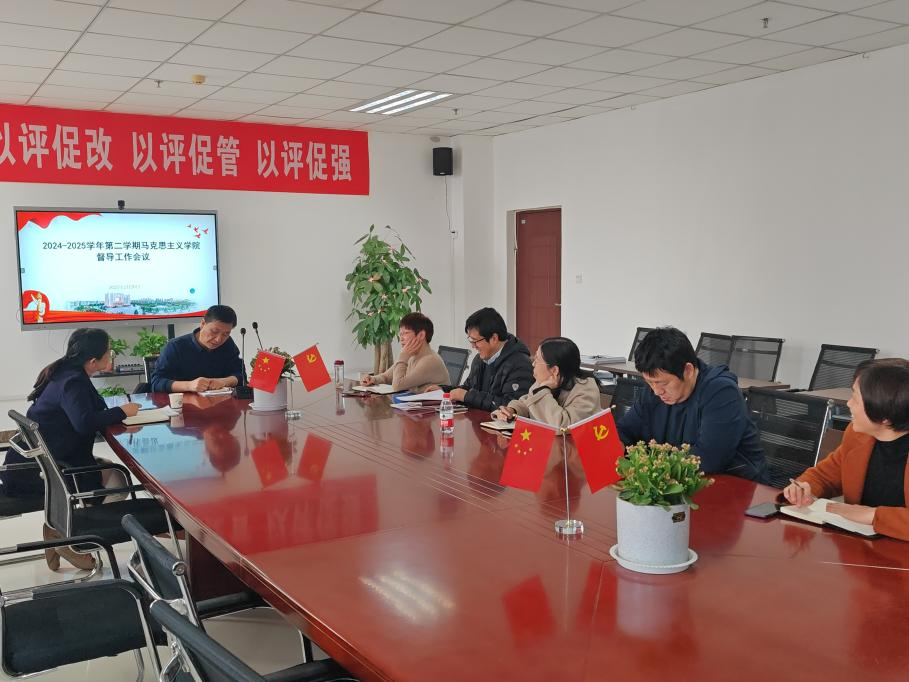 学院于本学期开学前召开新学期督导工作会,安排部署新学期督导工作,研究制定了《马克思主义学院2024-2025-2学期教学督导工作计划》,要求学院督导高度重视,积极作为,按照计划开展督导工作。3月5日下午在综合楼702再次召开督导工作会,各位督导汇报了听巡课中发现的问题,针对存在的问题提出了自己的建议。