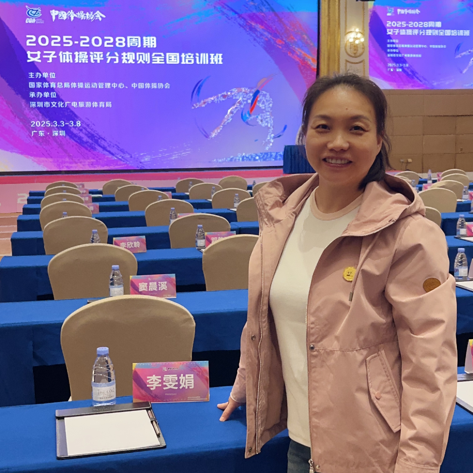 李雯娟老师深耕教育一线二十余年,始终秉持“以体育人”的理念,在裁判工作方面,长期活跃于国内外赛事一线,早在2021年,她便以国家级裁判员身份参与第十四届全运会执裁工作。同时指导河南省体操一级裁判员培训工作,为全省体操裁判队伍建设输送专业力量。