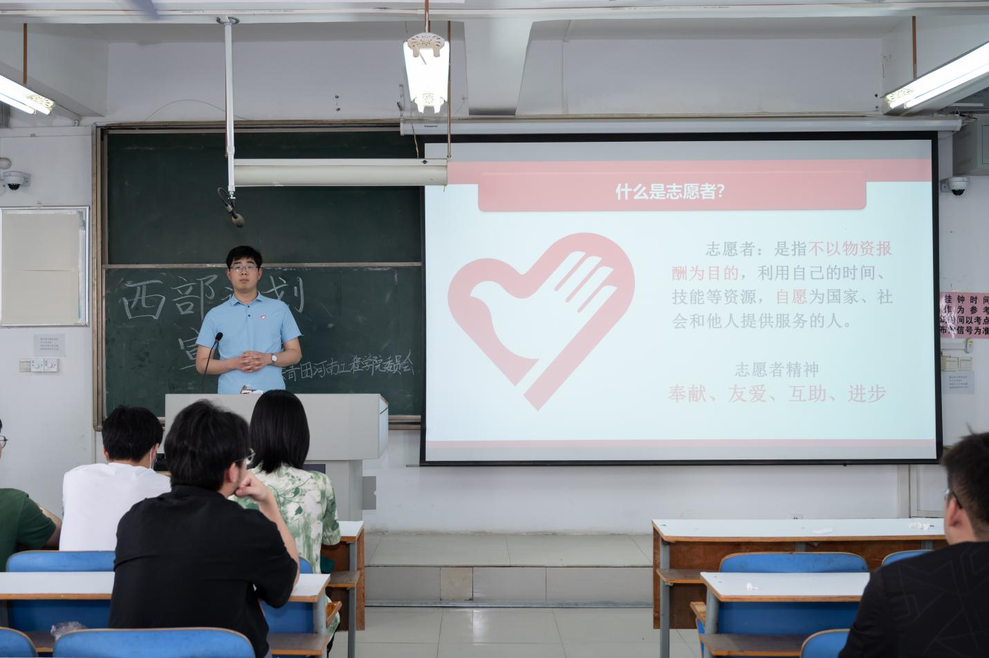 4月16日下午,开云官网在龙湖校区南区7A301举办2025年大学生志愿服务西部计划就业宣讲会,旨在落实共青团服务和促进大学生就业工作,引导和鼓励青年学子到西部去、到基层去、到祖国和人民最需要的地方去。校团委老师、各学院应届毕业生参加宣讲活动。