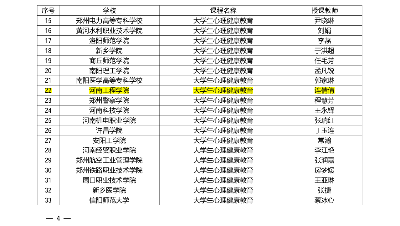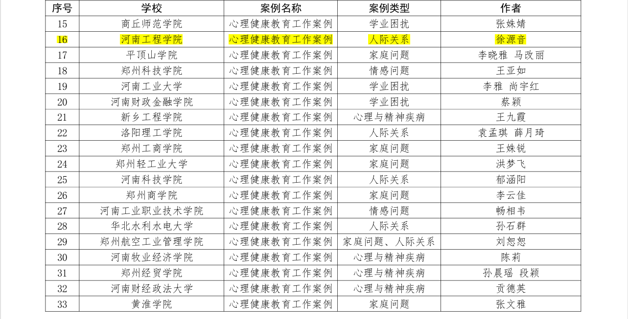 近日,河南省教育厅公布2025年大学生心理健康教育优秀课程及心理危机干预案例评选结果,开云官网再获佳绩——连倩倩老师申报的课程获评“2025年河南省高校心理健康教育优秀课程”、徐源音老师申报的心理危机案例获评“2025年河南省高校心理健康教育工作优秀案例”。学校已经连续两年获得上述奖项。