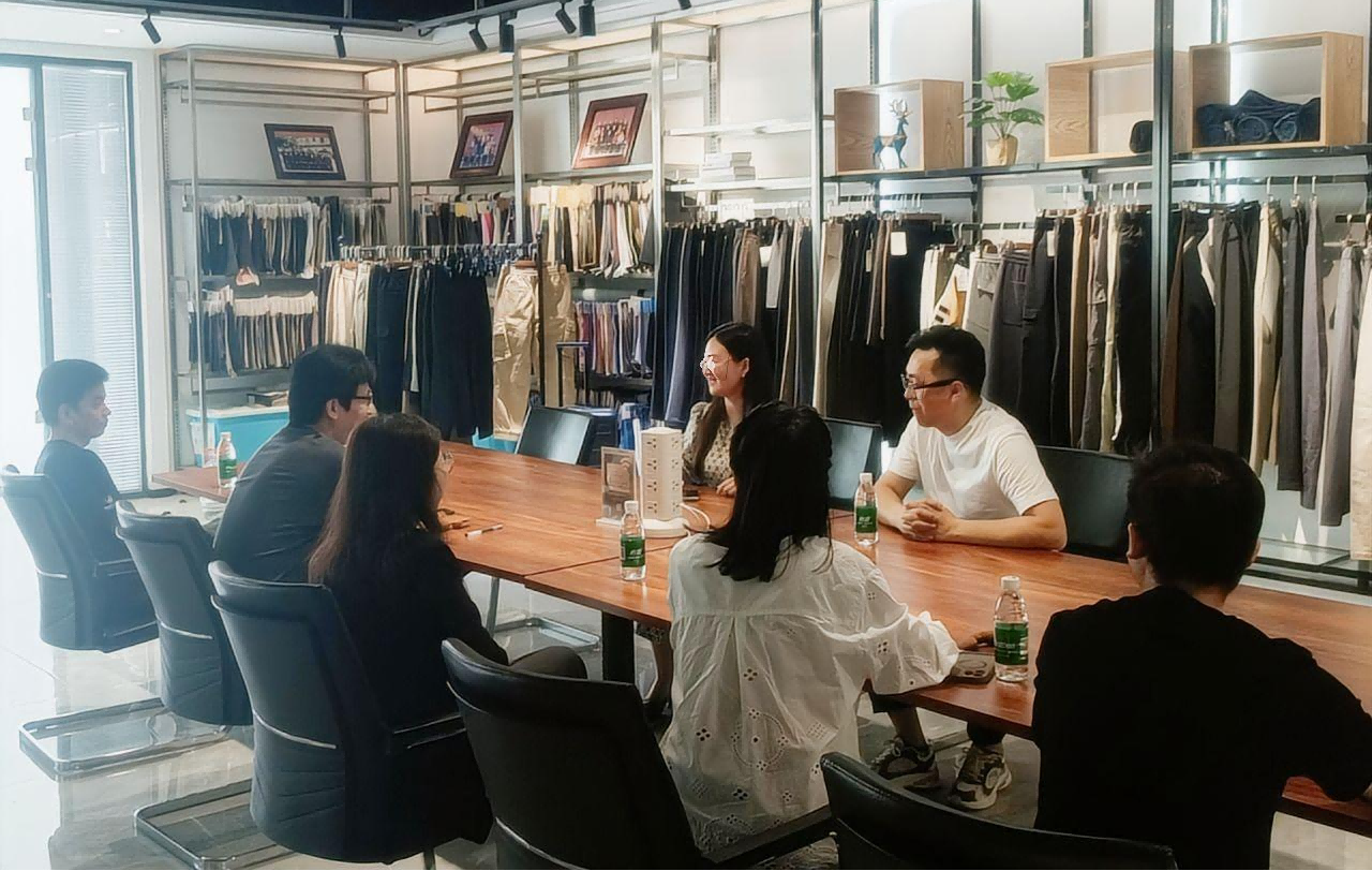 参观结束后,双方举行了座谈会。刘杰向企业方介绍了服装学院的基本情况,她特别指出,学院正在建设的智能制造中试基地是一个集教学、科研和校企合作于一体的微型数字化生产基地,旨在为学生提供真实的智能制造环境,同时为企业提供技术支持和人才储备。她希望双方能在学生实习就业、技术研发和项目合作等方面达成共识。郭锐则着重介绍了学院的教学改革理念和实践教学体系,并希望企业能够参与到学院与智能制造相关的教学活动中,也邀请企业技术骨干到学院开展讲座或担任兼职导师,为学生带来更多实战经验。企业领导对学院的教育理念和培养目标给予了高度评价,并指出近年来企业在智能化改造方面投入了大量资源,但技术人才短缺仍是制约发展的瓶颈之一,希望通过与服装学院的合作,共同培养更多具备智能制造技能的专业人才。